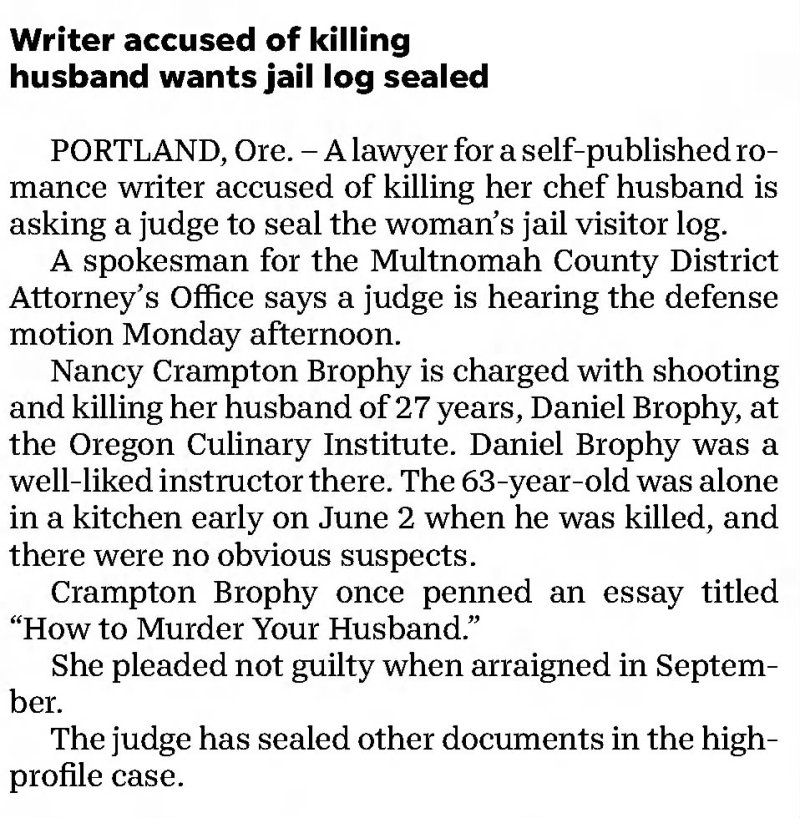 From writing “How to murder your husband” to being on trial for that exact act, the story of Nancy Crampton-Brophy is a head-scratching tale of betrayal and murder.