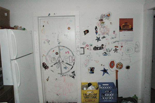 Strange doodles were also written on the walls and doors. In the freezer were only two dead squirrels and red popsicles.