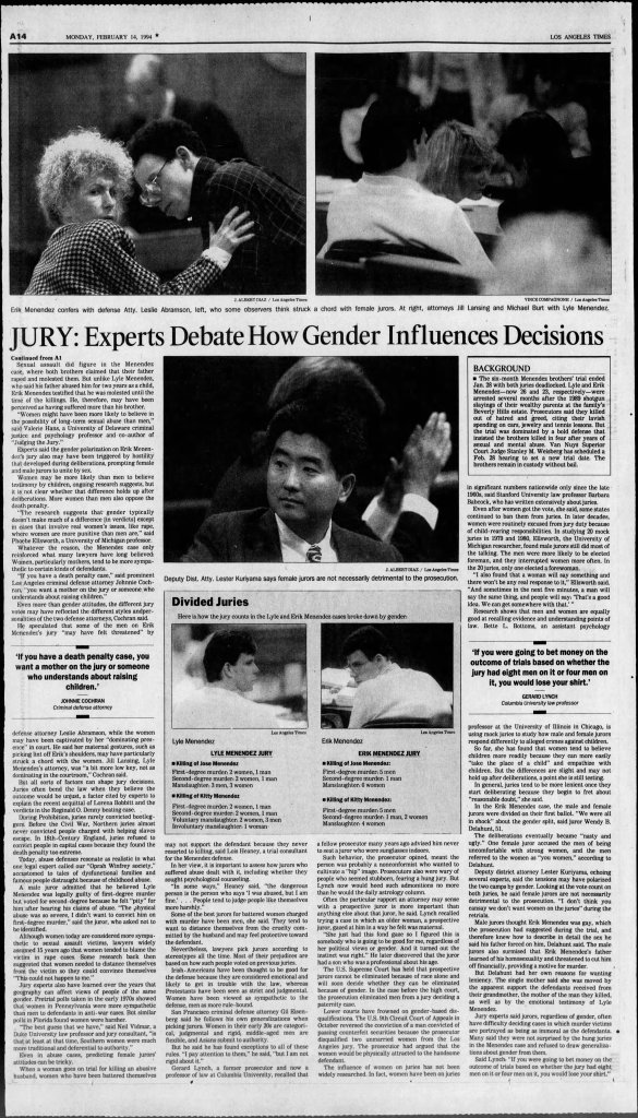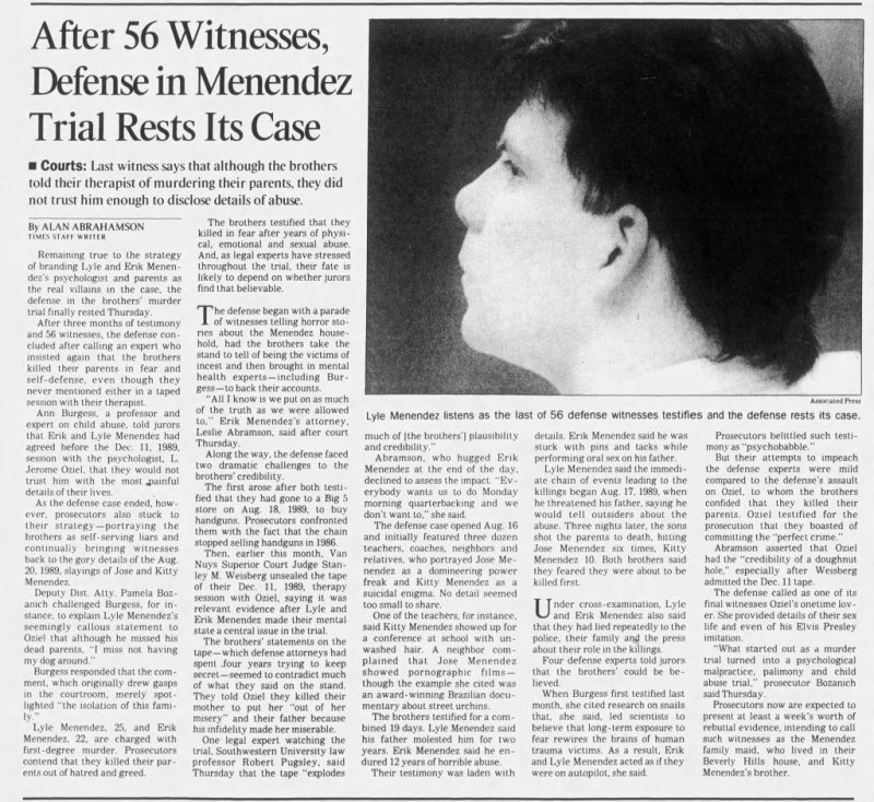 Their first trial was aired on Court TV in 1993. Family members corroborated the abuse, and the trial ended in two deadlocked juries. In the second trial, there was a media blackout with cameras not even allowed in the courtroom. The testimony and information about the sexual abuse was limited in this trial, and jury was no longer allowed to vote on manslaughter instead of murder.