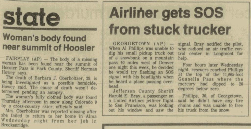 Breckenridge, Colorado is a small ski resort town with year round outdoor tourists visiting for hiking, fly fishing and more. The quiet and scenic little town had an odd and distressing day on January 6, 1982.